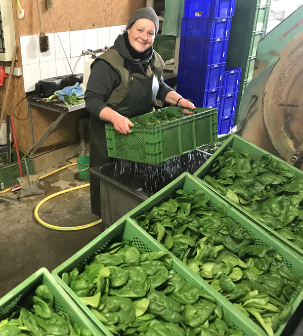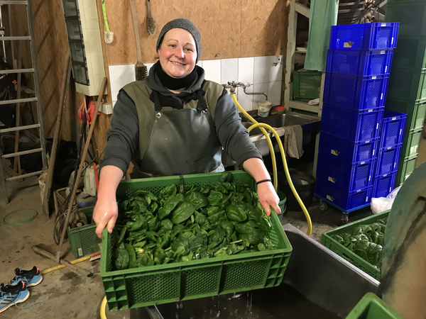 In den ersten Wochen des Jahres 2023 durften wir noch wunderschönen Spinat und Lauch aus dem Freiland ernten. Aus unserem Kühllager bereiten wir 2mal wöchentlich Wurzelgemüse, wie Möhren, Rote und Gelbe Bete, Sellerie und Pastinaken aus der Ernte im Herbst 2022 auf.