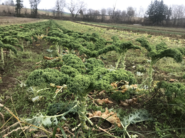 Die Tage werden kühler und nässer, das Tageslicht kürzer. Noch befindet sich viel in unseren Köpfen, was bis zu unserer kleinen Winterpause noch erledigt werden sollte, aber dann sollte es auf dem Gärtnerhof langsam etwas ruhiger werden. Spätestens der Einbruch der Dunkelheit beschert uns momentan einen relativ pünktlichen Feierabend was den Acker angeht. Das Lagergemüse befindet sich in unseren Kühlhäusern und wir haben einen Teil unseres Feldsalates mit einem Tunnel überbaut, der uns bei jedem Wetter die Ernte ermöglicht. Natürlich gibt es auf dem Acker immer auch etwas, was uns nicht so glücklich stimmt, das ist momentan der Spinat. Er ist leider an den äußeren Blättern gelb geworden, was die Ernte sehr aufwendig macht. Lecker schmeckt er natürlich trotzdem und in der Erntekiste befindet sich eine tolle Qualität aber leider bleibt viel Ernteabfall auf dem Feld. Wie gut, dass wir auch Spinat in den Gewächshäusern haben, der sieht prächtig aus.