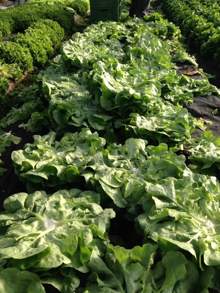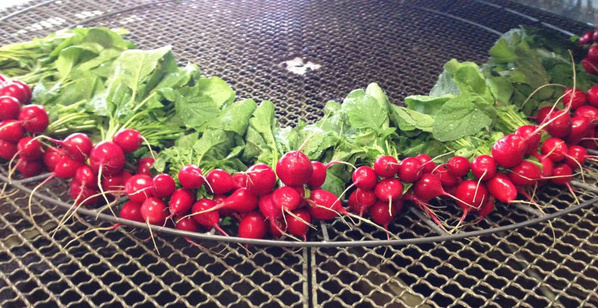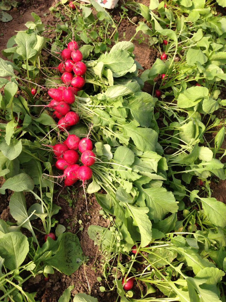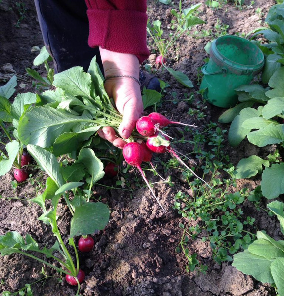 Wir ernten inzwischen eigenen Salat und Radieschen aus dem Gewächshaus….