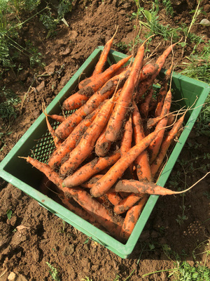 Seit Anfang Juli ernten wir die ersten Frühmöhren.