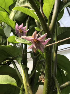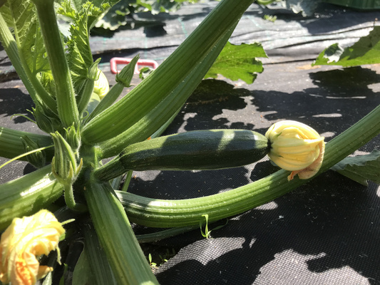 Im Gewächshaus gibts massig Gurken sowie die ersten Auberginen und die ersten Tomaten bekommen rote Bäckchen.