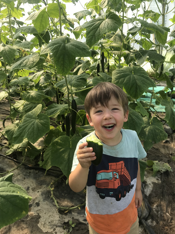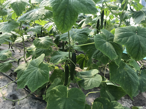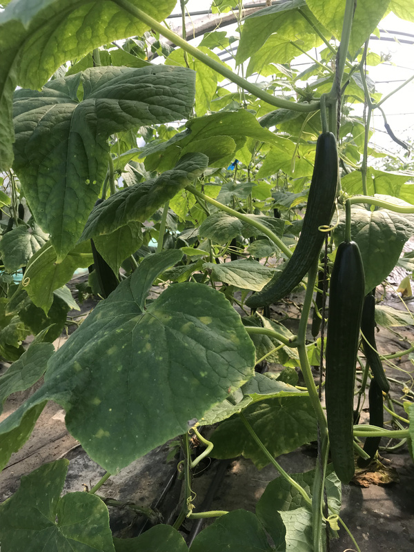 Die Gurkenernte ist seit einigen Wochen zu Gange. Auch hier breitet sich leider auf den Blattunterseiten der Pflanzen ein Pilz aus, der sogenannte "Falsche Mehltau". Im letzten Bild ist der Pilz an den hellen, gelblichen Flecken auf dem Blatt gut erkennbar.