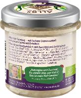 Zucchini* (43%), Auberginen* (20%), Sonnenblumenöl*, Sonnenblumenkerne*, Rote Bete-Saft aus Rote Bete-Saftkonzentrat*, Agavendicksaft*, Kartoffelstärke*, Zitronensaftkonzentrat*, Zwiebelpulver*, Meersalz, Knoblauchpulver*, Rauchsalz (Meersalz, Erlenholzrauch), Verdickungsmittel: Johannisbrotkernmehl*, schwarzer Pfeffer*.| Energie | Fett | gesättigte Fettsäuren | Kohlenhydrate | Zucker | Ballaststoffe | Eiweiss | Salz |