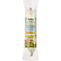 100g Produkt sind hergestellt aus 112g Schweinefleisch*, 38g Rindfleisch*, Meersalz, Gewürze* (Paprika*, 0,5% Fenchel*, Rosmarin*, Salbei*, Knoblauch*, Pfeffer*, Kardamom*, Ingwer*, Koriander*, Acerolakirsche*), Dextrose*, Trockenglukosesirup*. Nicht essbare Hülle.| Energie | Fett | gesättigte Fettsäuren | Kohlenhydrate | Zucker | Eiweiss | Salz |