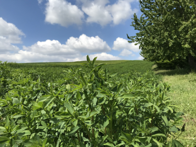 Zudem sorgt der Anbau von Leguminosen durch biologische Stickstofffixierung für einen natürlichen Stickstoffeintrag in den Boden. Die Wurzeln der Leguminosen leben in Symbiose mit Rhizobium-Bakterien, die Stickstoff aus der Luft fixieren können. In den Wurzelknöllchen wird dieser Stickstoff in Aminosäuren umgewandelt und steht so den Wirtspflanzen zur Verfügung. In unserem Betrieb wird aus der Familie der Leguminosen eine mehrjährige Luzerne-Klee-Gras-Mischung und ein Erbsen-Wicken-Gemenge als Zwischenfrucht in die Fruchtfolge integriert.