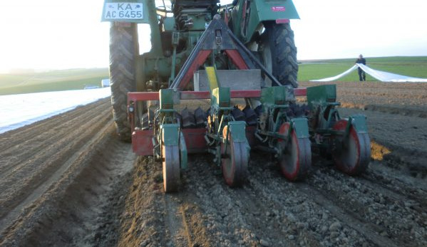 Alle anderen Jungpflanzen werden, wenn es die Umweltbedingungen zulassen, mithilfe einer Maschine in die Erde gebracht, auf der bis zu vier Personen sitzen und die Pflanzen in die von der Maschine gestanzten Löcher setzen.