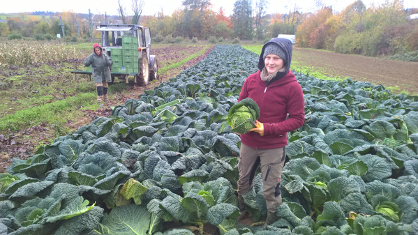 Mit dem Einzug der kurzen Tage und der Kälte im Winter ernten wir knackigen Feldsalat vom Freiland. An Wintergemüse werden Möhren, Pastinaken, Sellerie, Chinakohl und Zuckerhut eingelagert. Wirsing, Lauch und Feldsalat stehen auch im Neuen Jahr noch draußen.