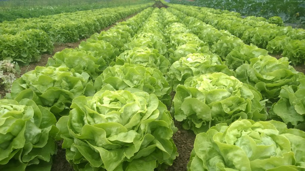 Blattgemüse: Blattsalate wie Kopfsalat, Eichblattsalat, Batavia, Romana und Eisbergsalat, Babyleaf, Rucola, Asia-Mix, Spinat, Mangold sowie Wintersalate wie Endivien, Radicchio, Zuckerhut, Feldsalat