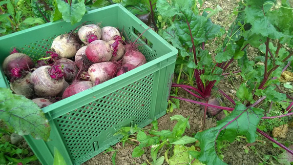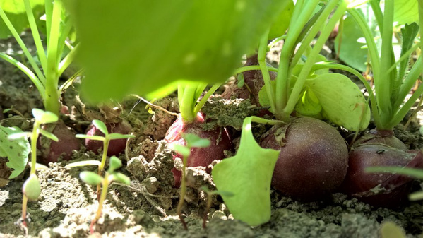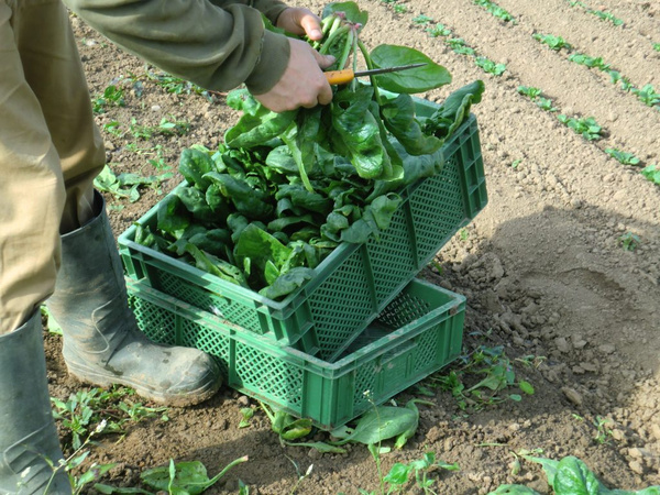 Mit der ersten Ernte von Salaten und Kohlrabi aus dem Gewächshaus folgen im Frühjahr im Freiland Radieschen, Spinat, Fenchel, sowie die ersten Möhren und Rote Bete. Kartoffeln sind auch dabei.